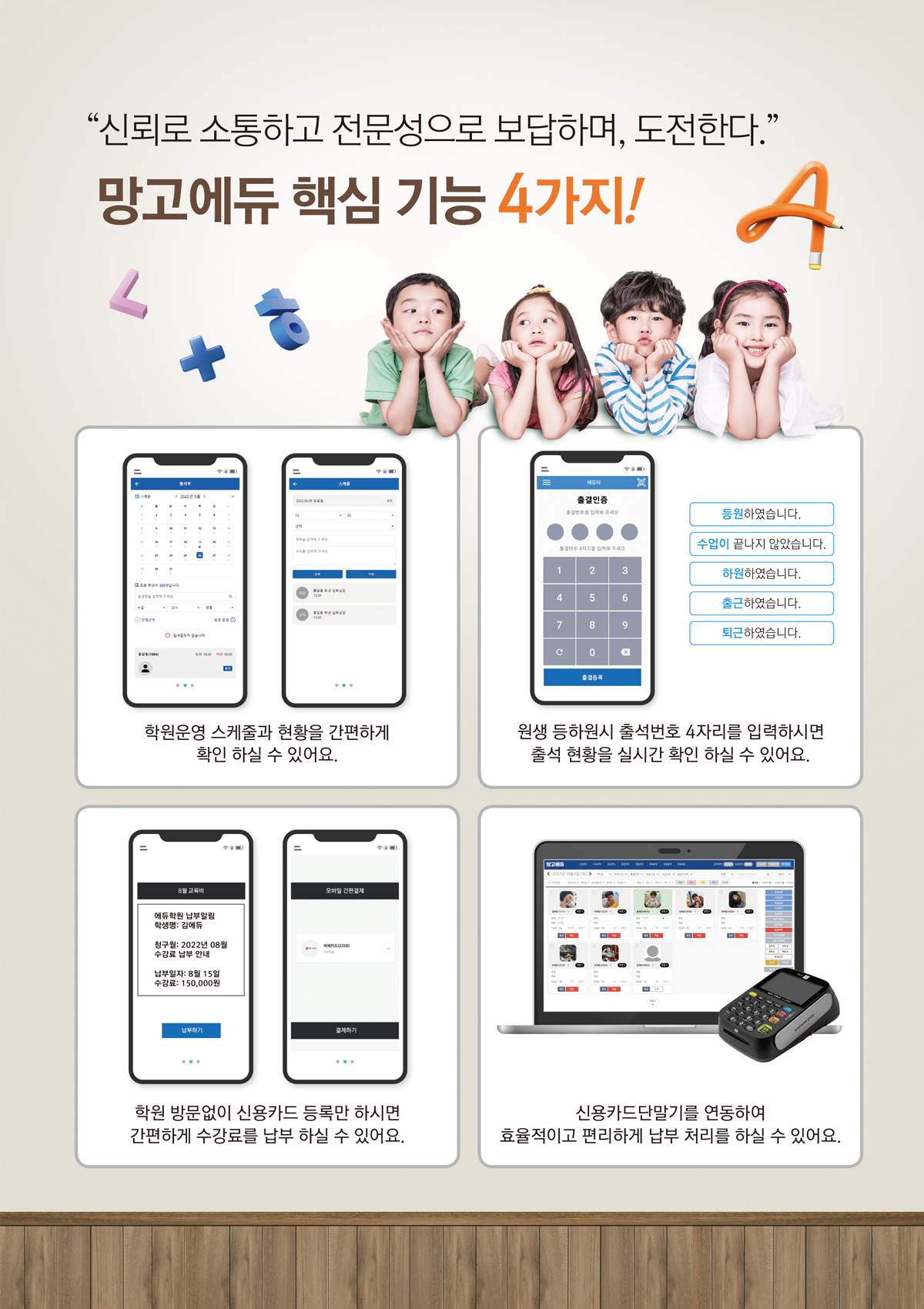 학원 특성상 아이들이 몰리는 등하원 상황에 상상이상으로 복잡한데 출결 앱 사용하니까 정말 편리하네요.